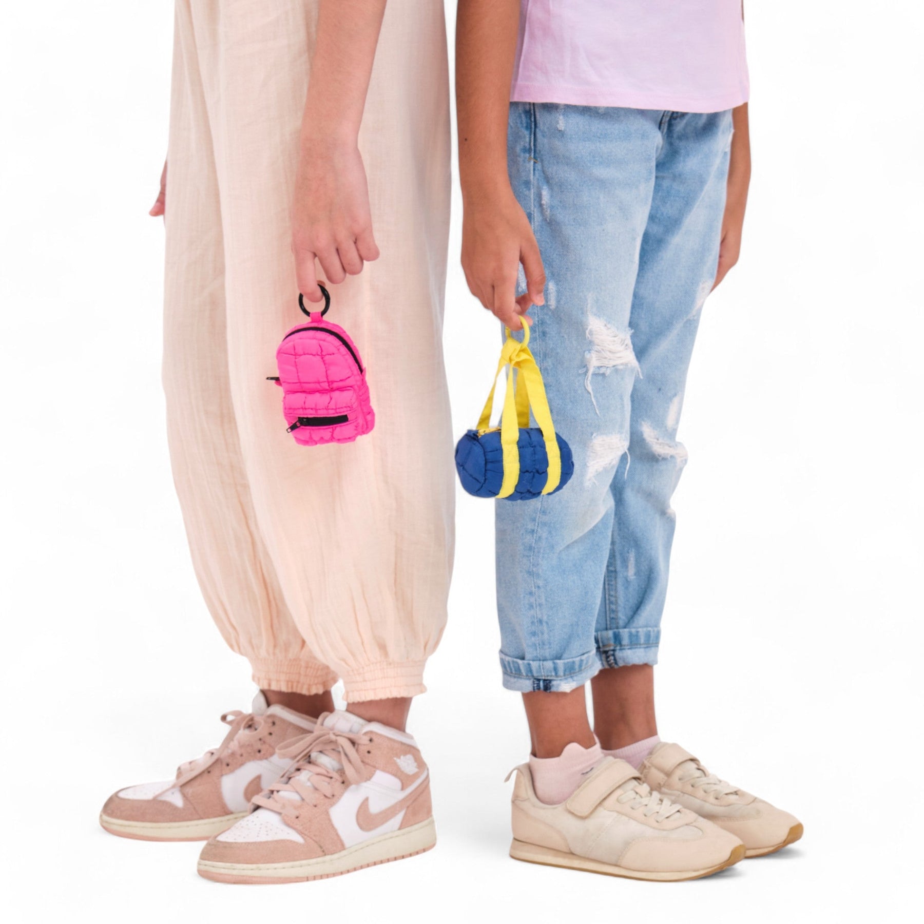 This adorable mini backpack/ duffel expands into a spacious carry-all for groceries, wet clothes, or unexpected extras!